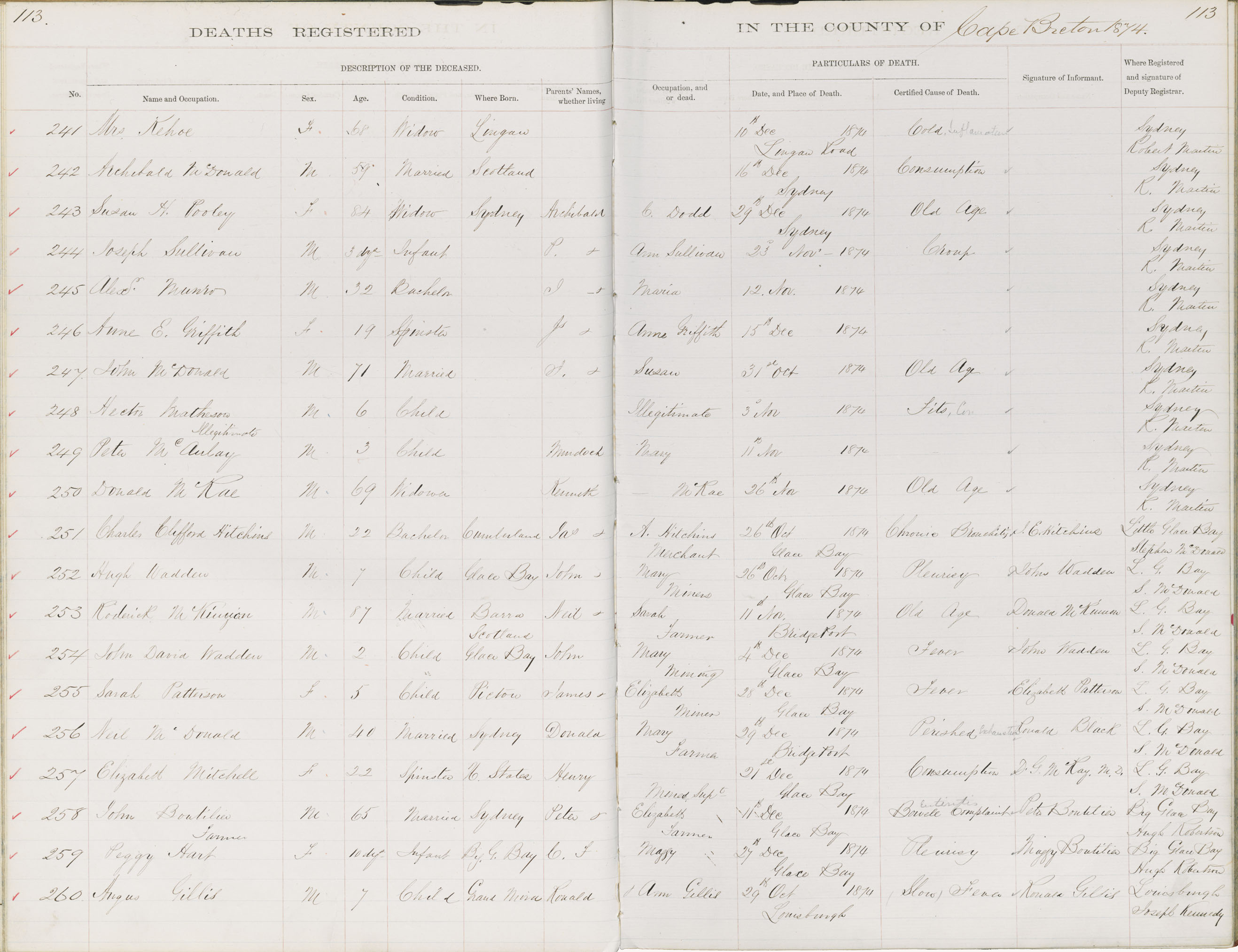 Death Registration: Year: 1874 book: 1803 page: 113 number: 241