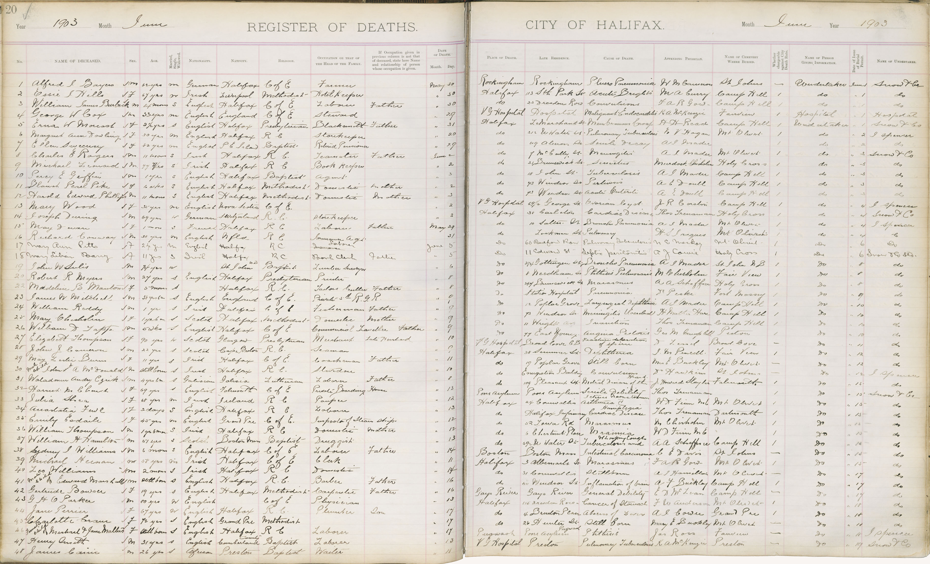 Death Registration: Year: 1903 book: 1903 page: 20 number: 35