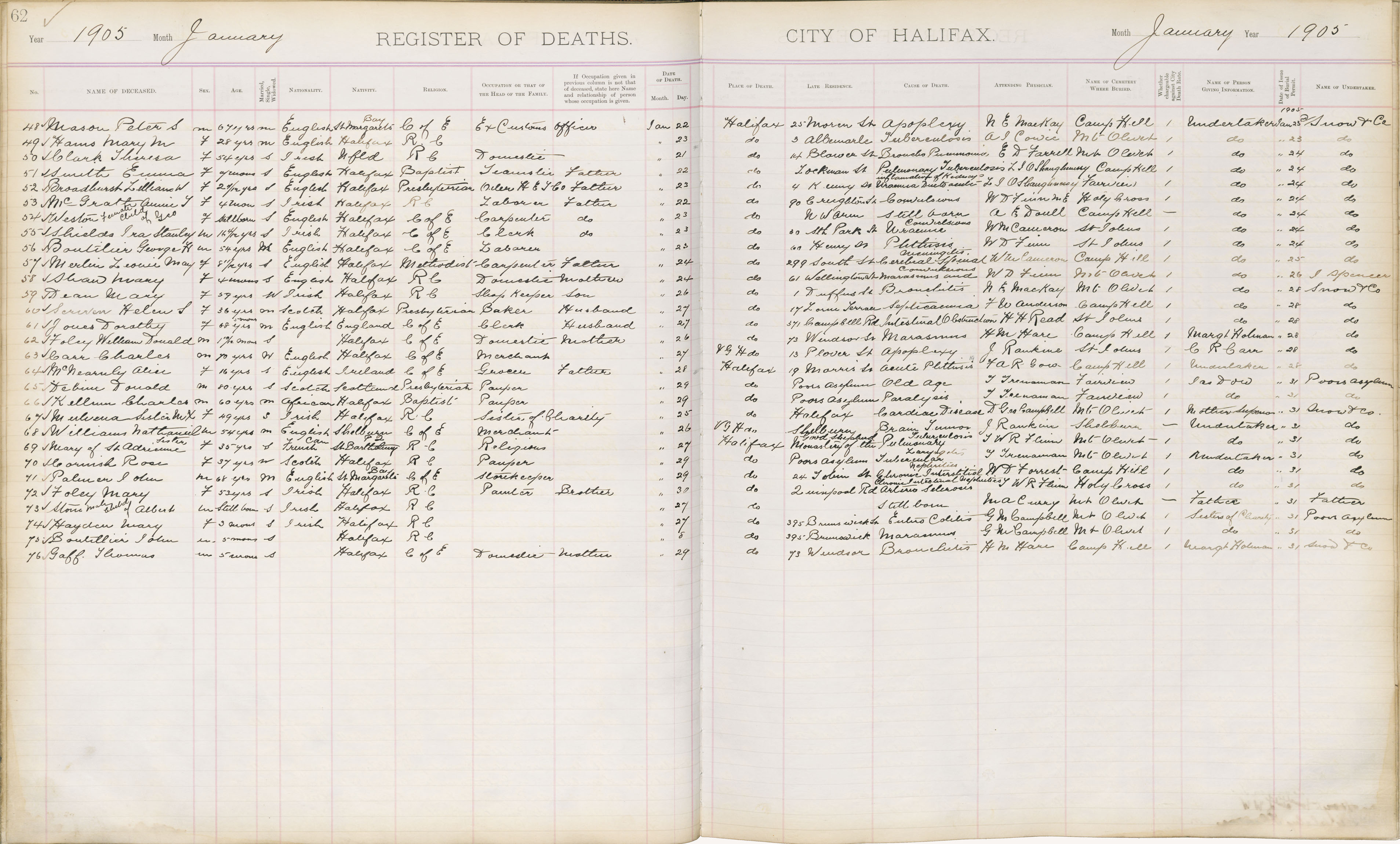 Death Registration: Year: 1905 book: 1905 page: 62 number: 48