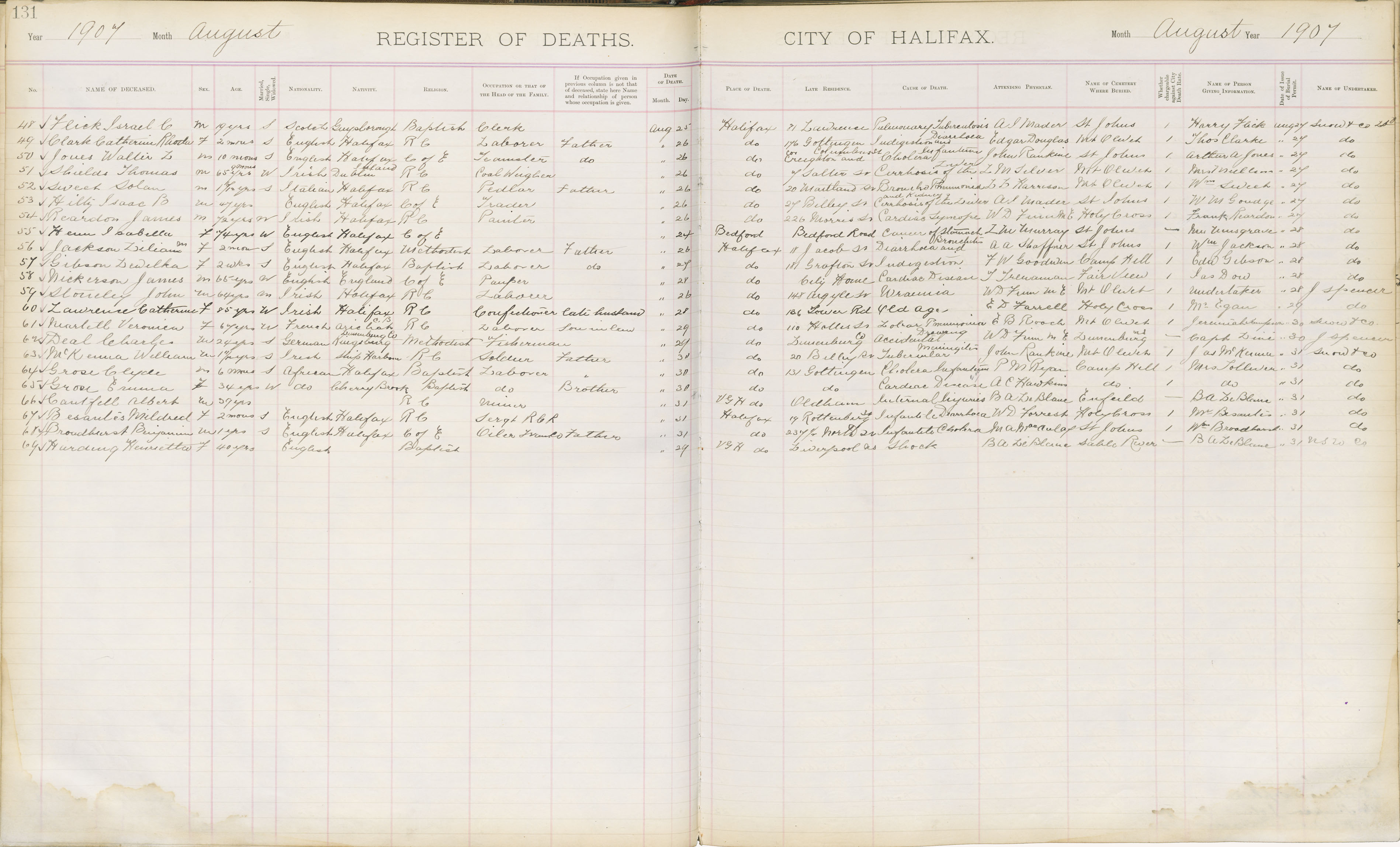 Death Registration: Year: 1907 book: 1907 page: 131 number: 48