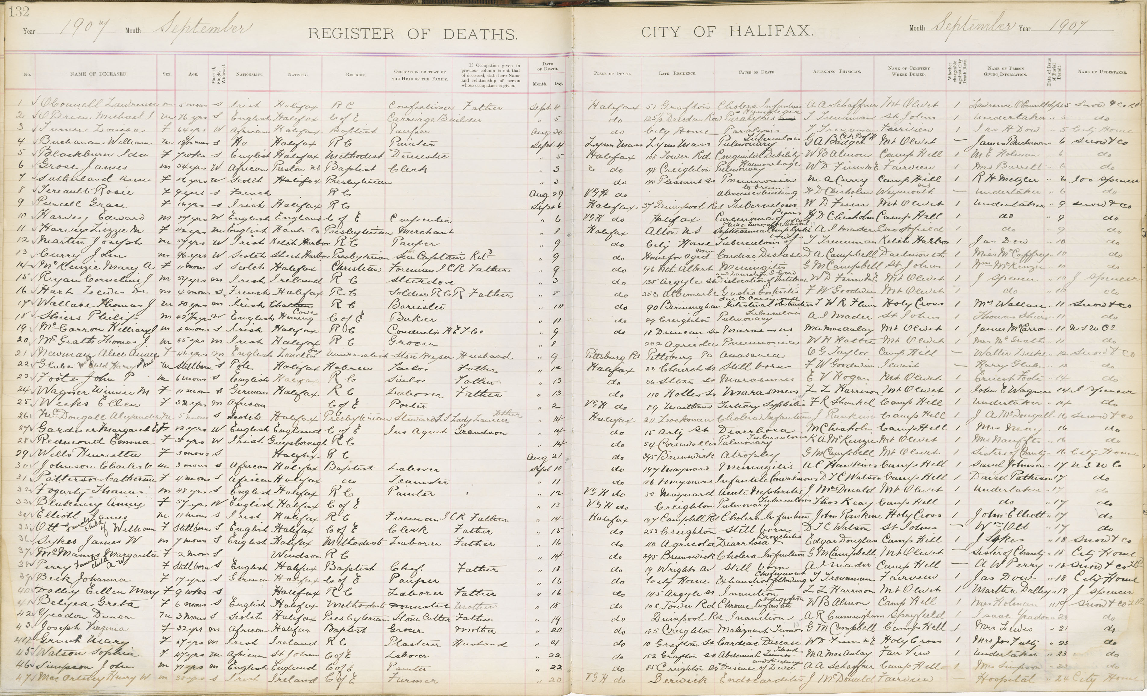 Death Registration: Year: 1907 book: 1907 page: 132 number: 1