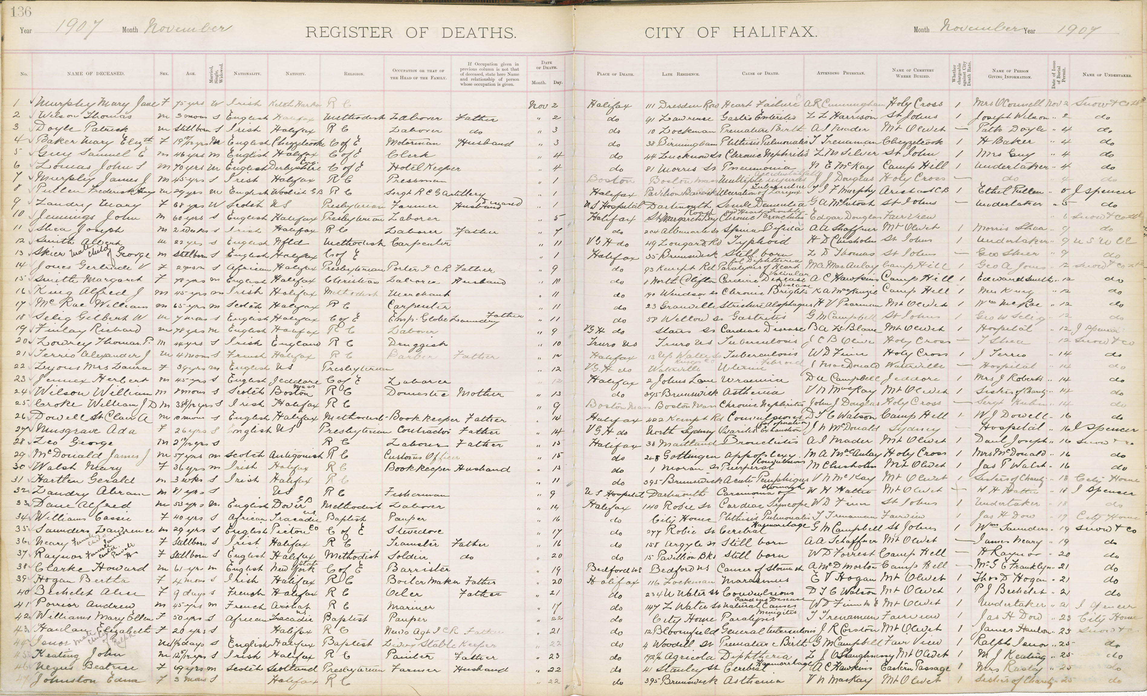 Death Registration: Year: 1907 book: 1907 page: 136 number: 47
