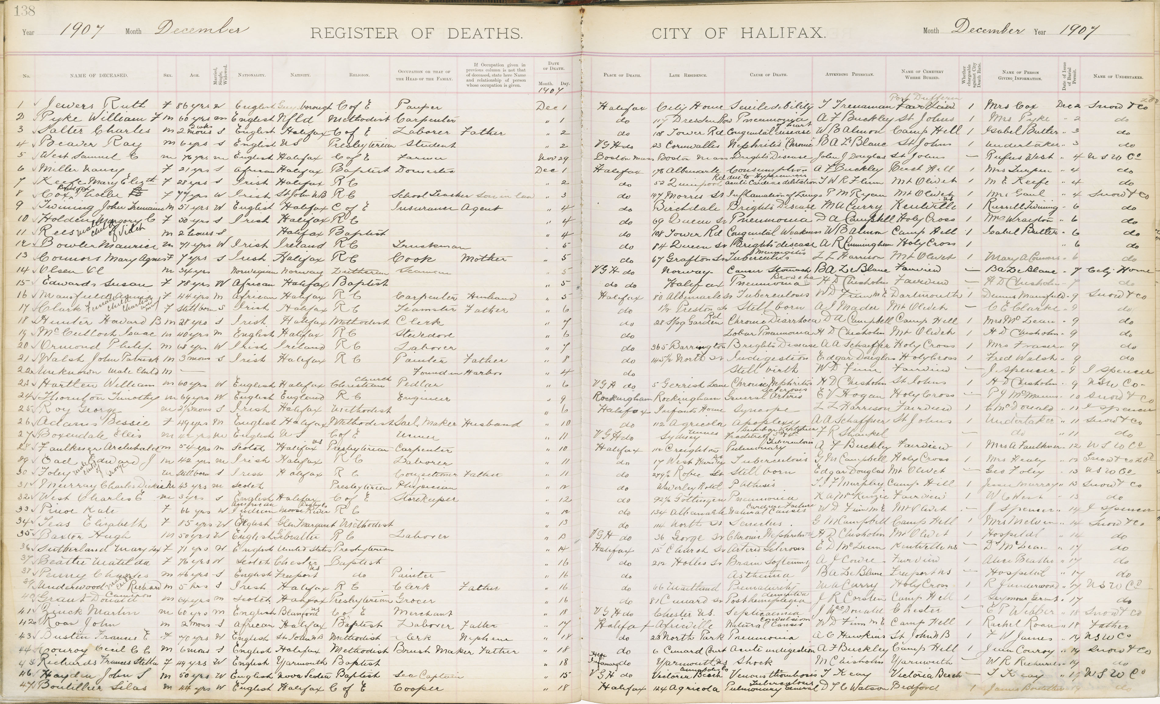 Death Registration: Year: 1907 book: 1907 page: 138 number: 47