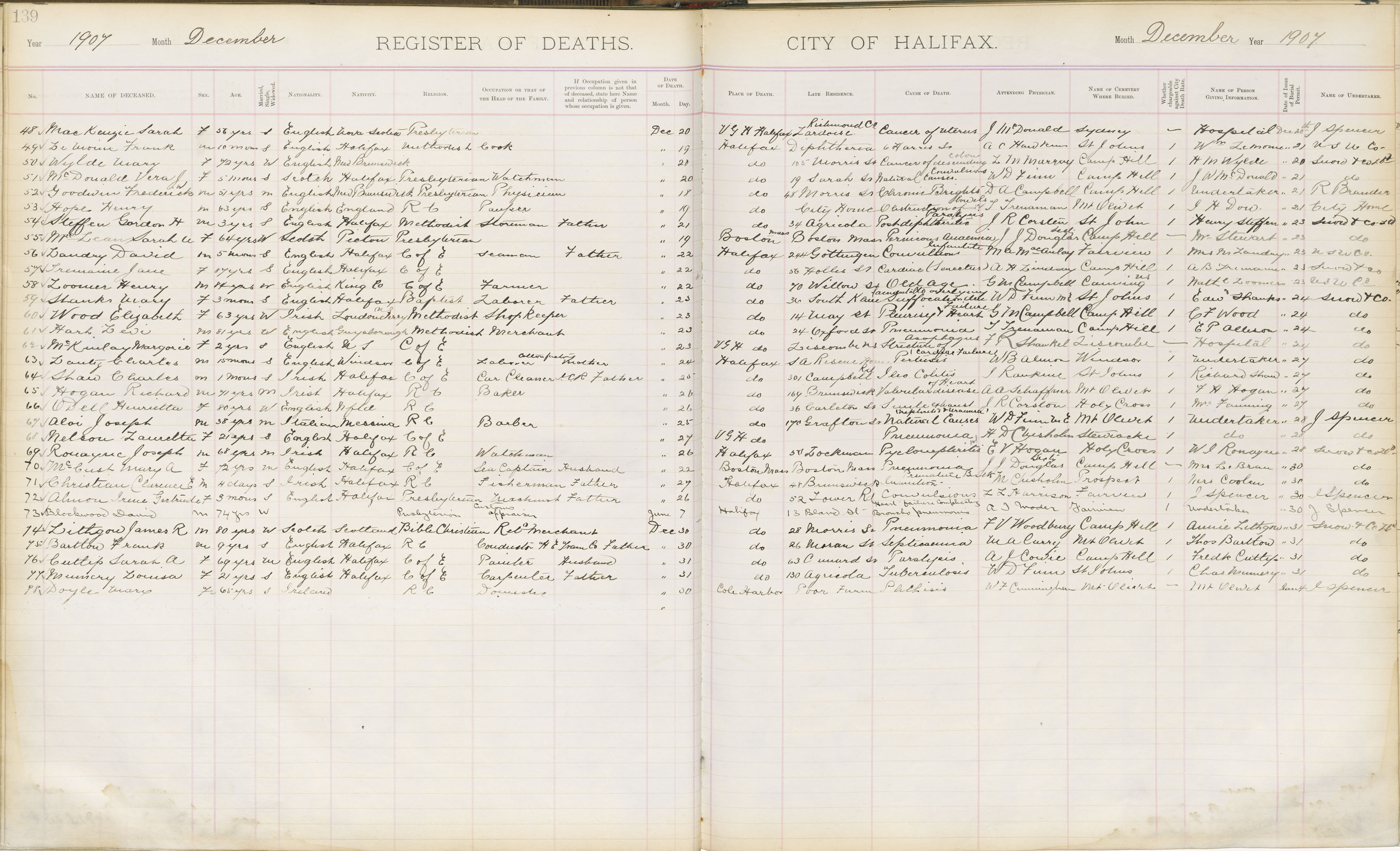 Death Registration: Year: 1907 book: 1907 page: 139 number: 78