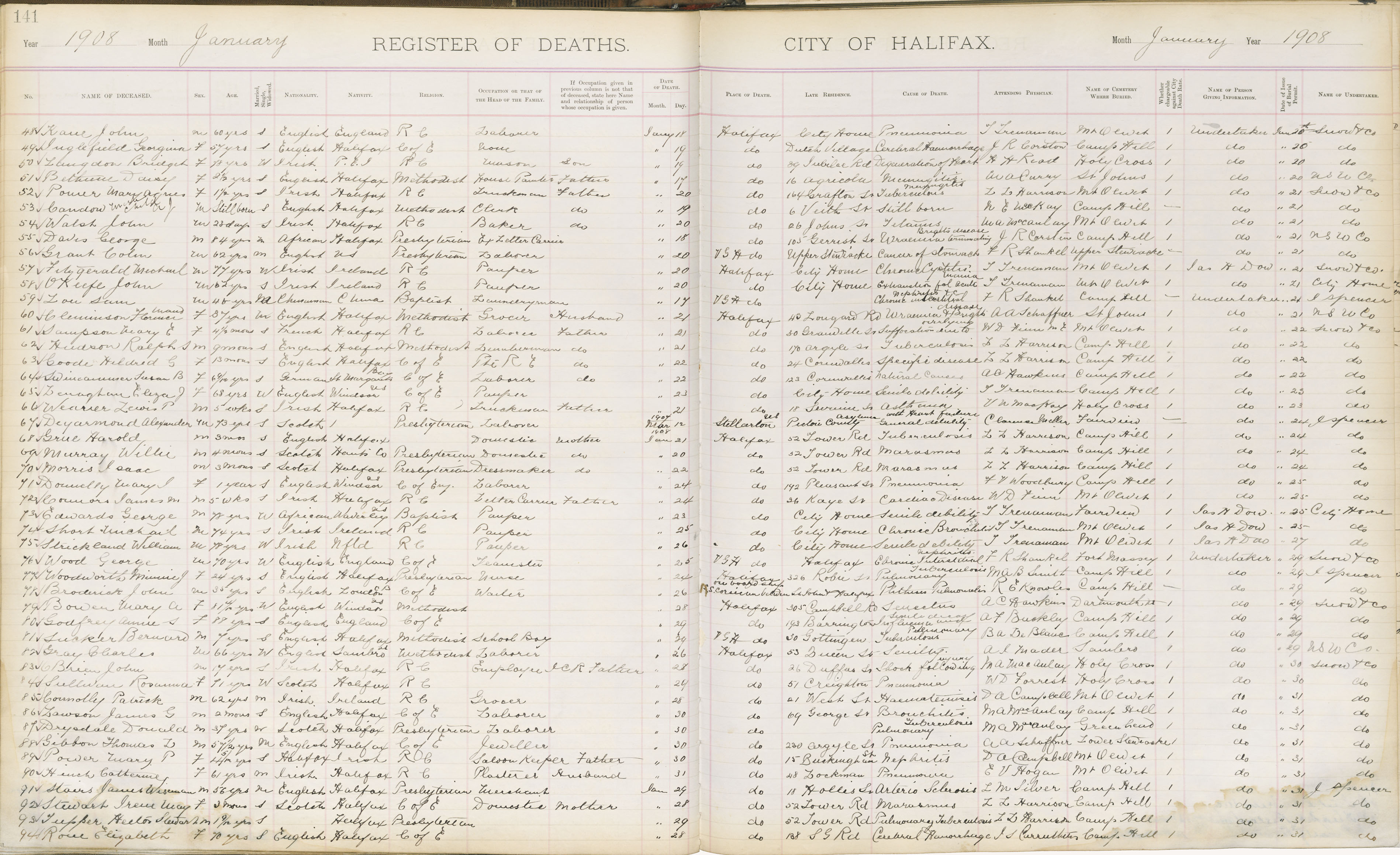 Death Registration: Year: 1908 book: 1908 page: 141 number: 48