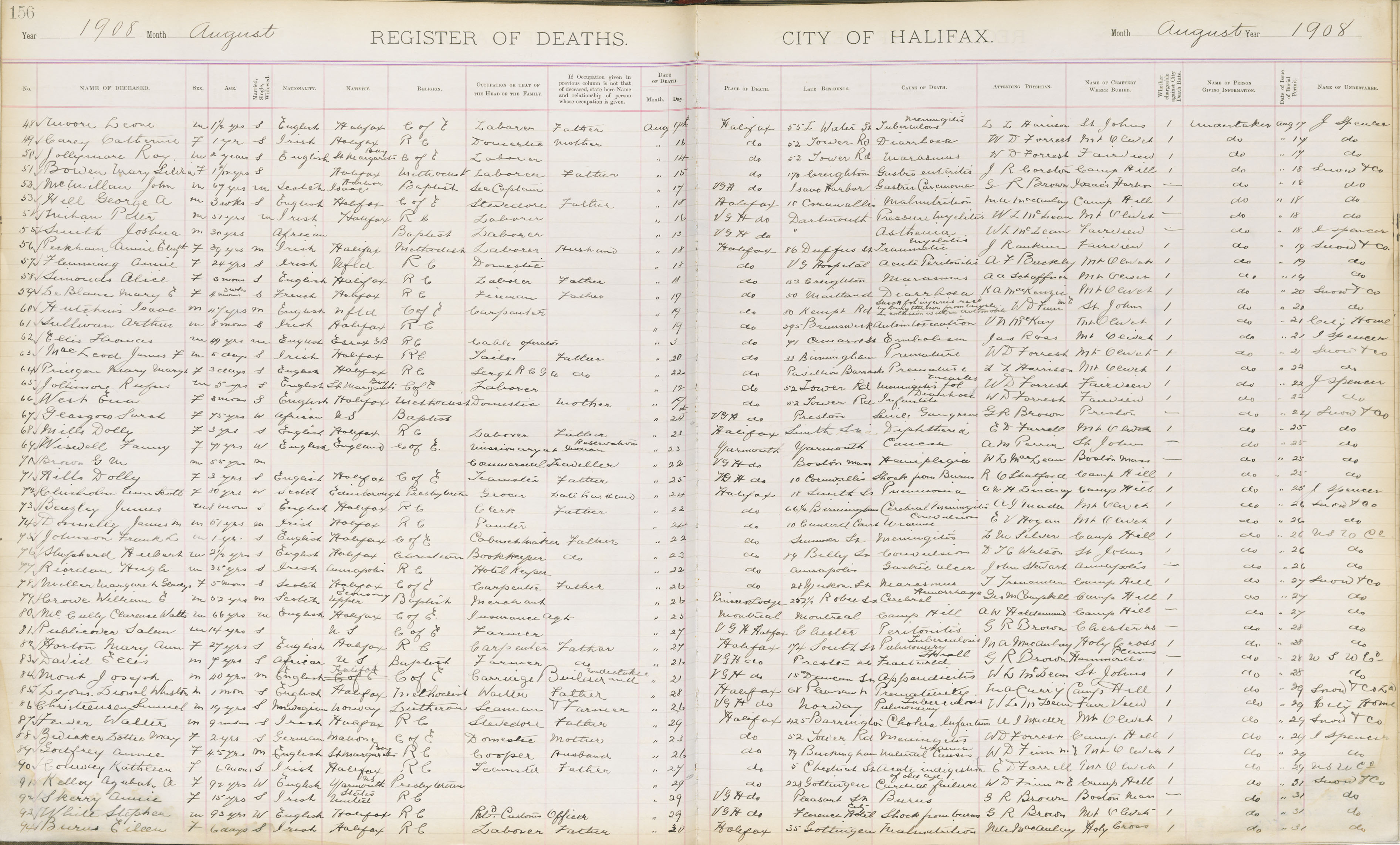 Death Registration: Year: 1908 book: 1908 page: 156 number: 48