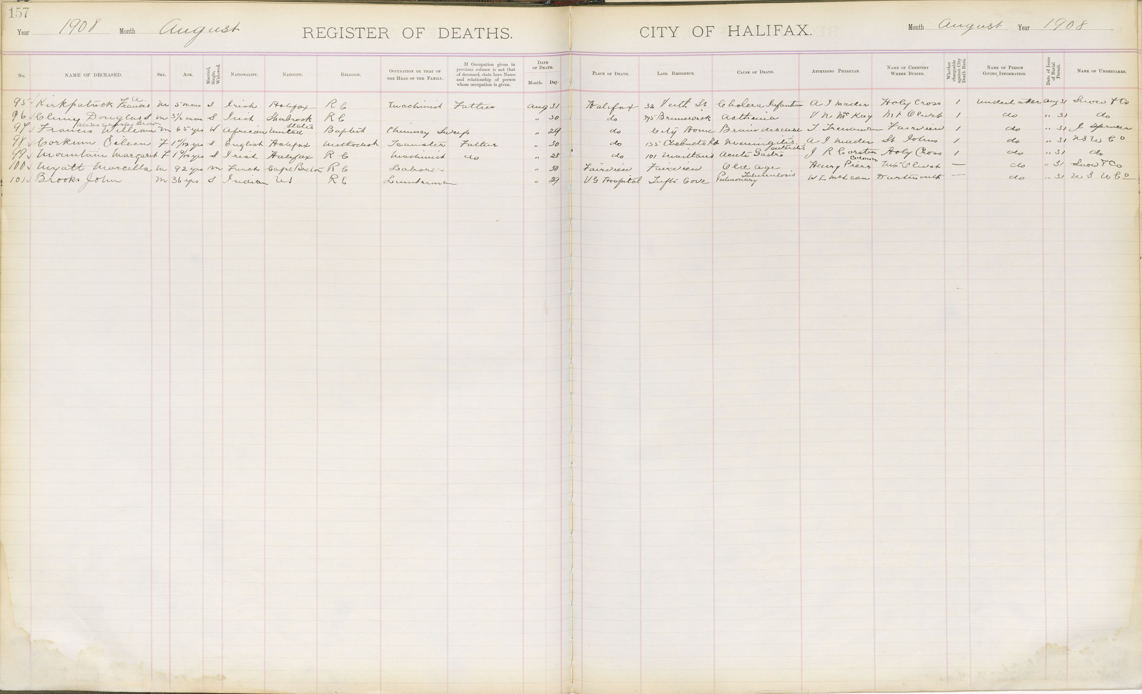 Death Registration: Year: 1908 book: 1908 page: 157 number: 95