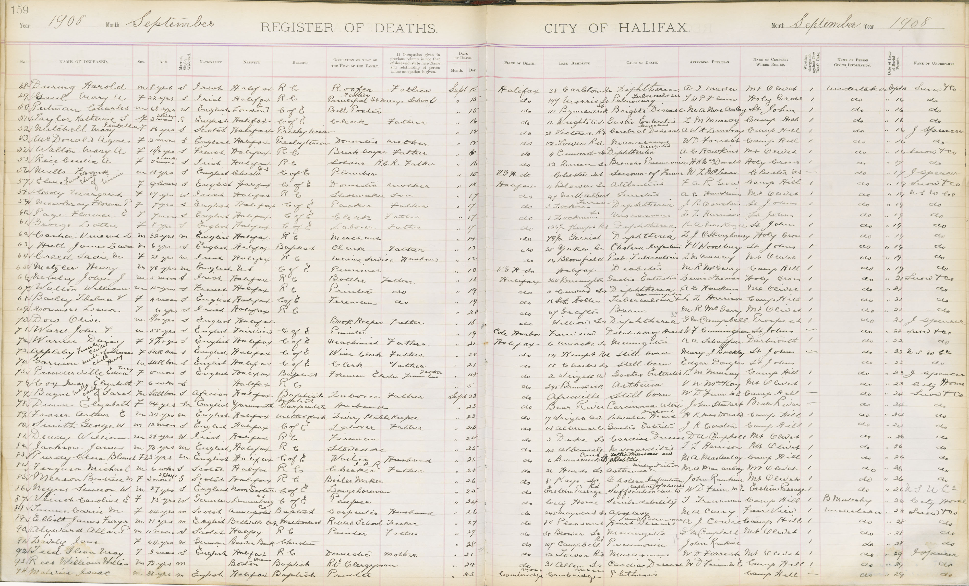 Death Registration: Year: 1908 book: 1908 page: 159 number: 48