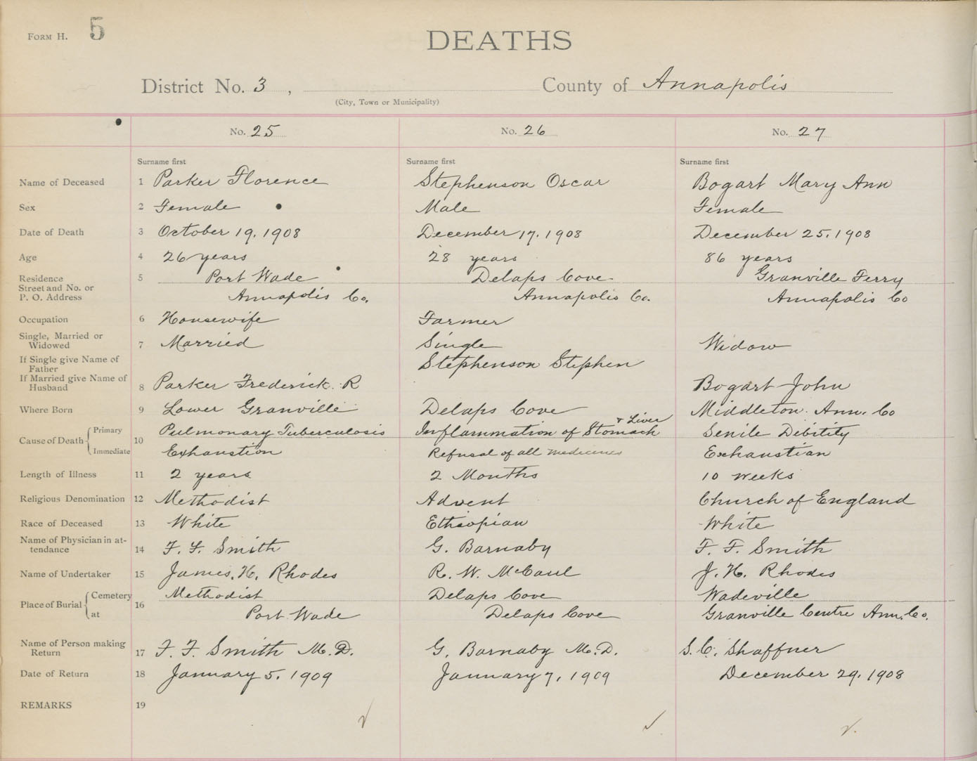 Death Registration: Year: 1908 book: 1 page: 5 number: 25