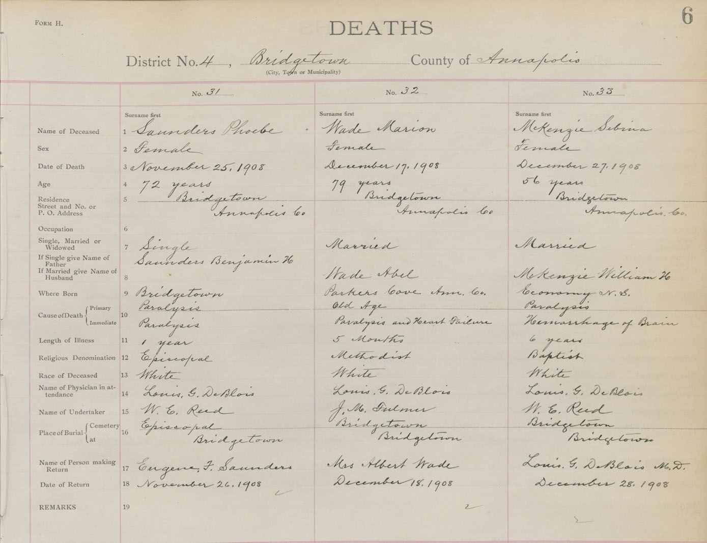 Death Registration: Year: 1908 book: 1 page: 6 number: 31