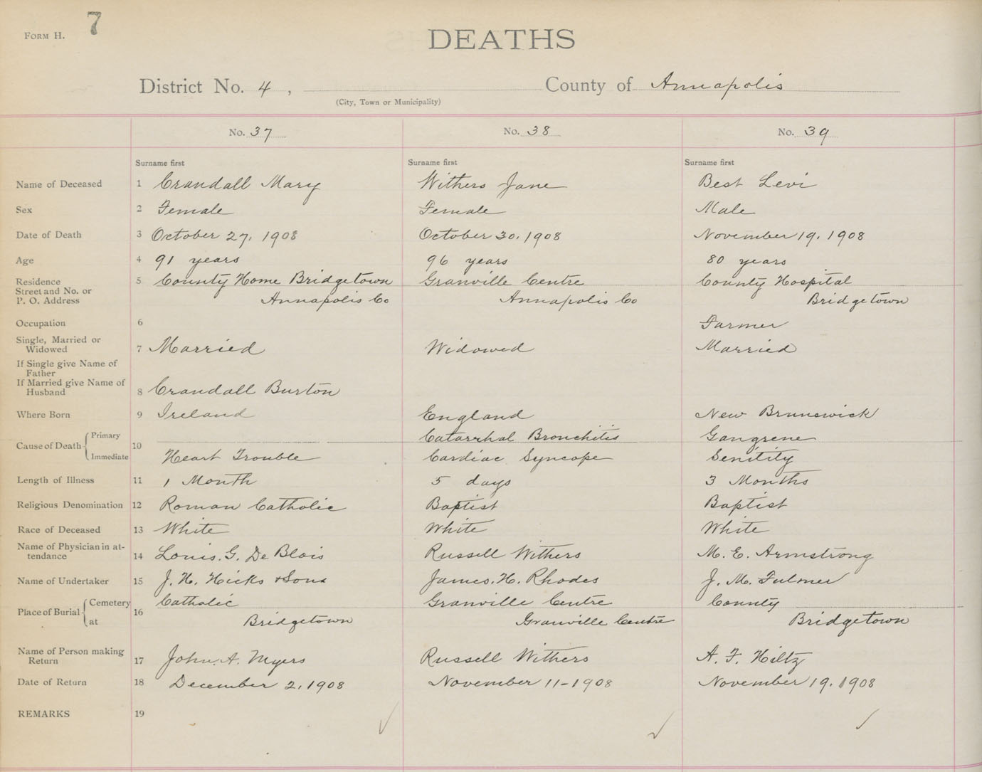 Death Registration: Year: 1908 book: 1 page: 7 number: 37