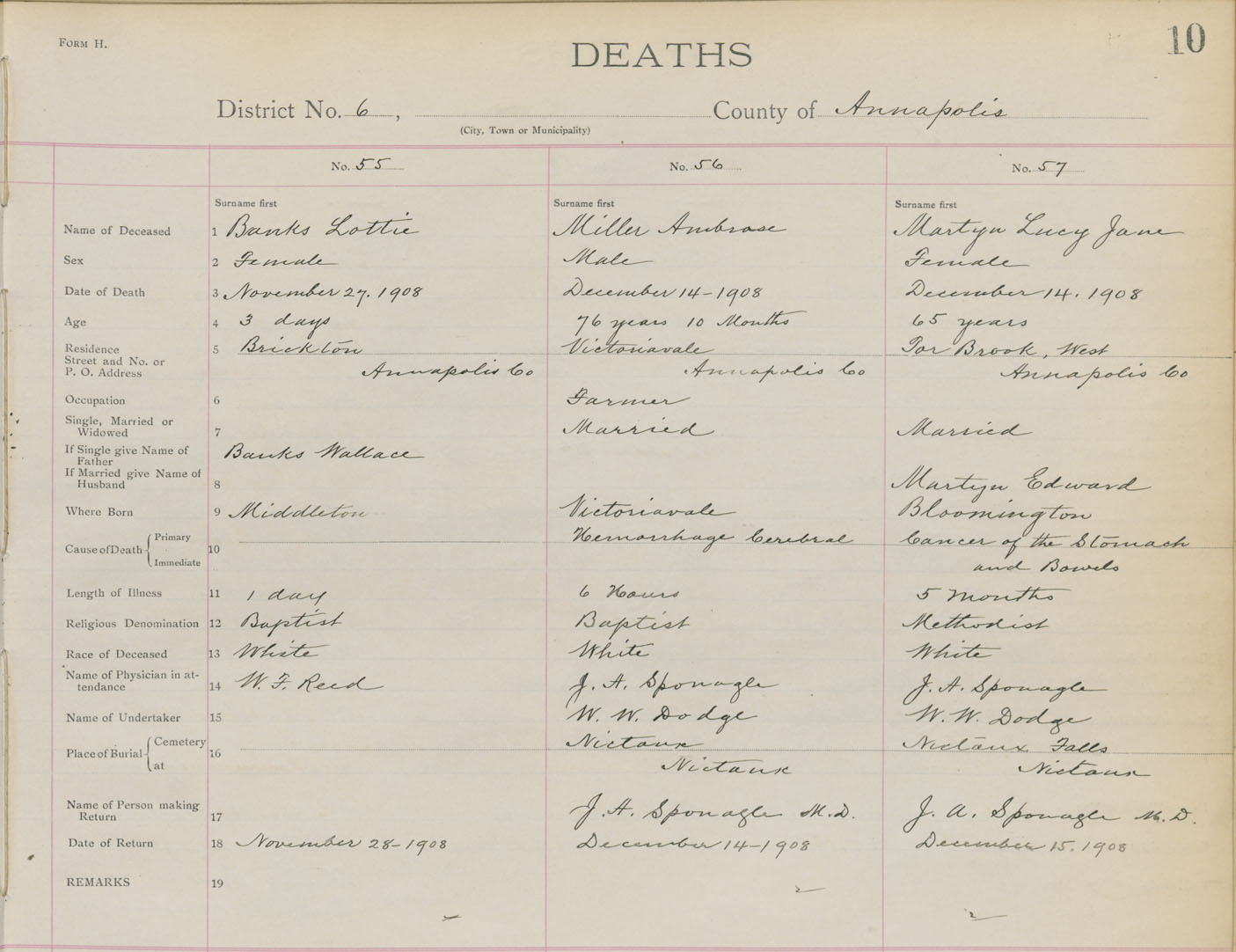 Death Registration: Year: 1908 book: 1 page: 10 number: 55