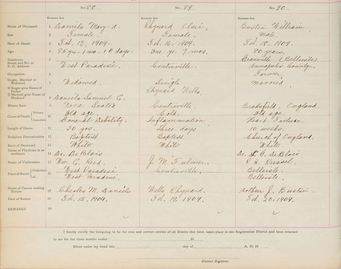 Death Registration: Year: 1909 book: 1 page: 15 number: 88