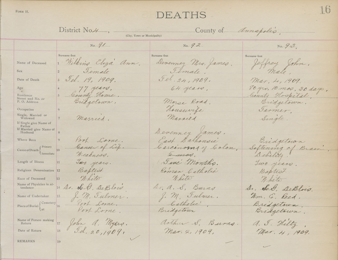 Death Registration: Year: 1909 book: 1 page: 16 number: 91