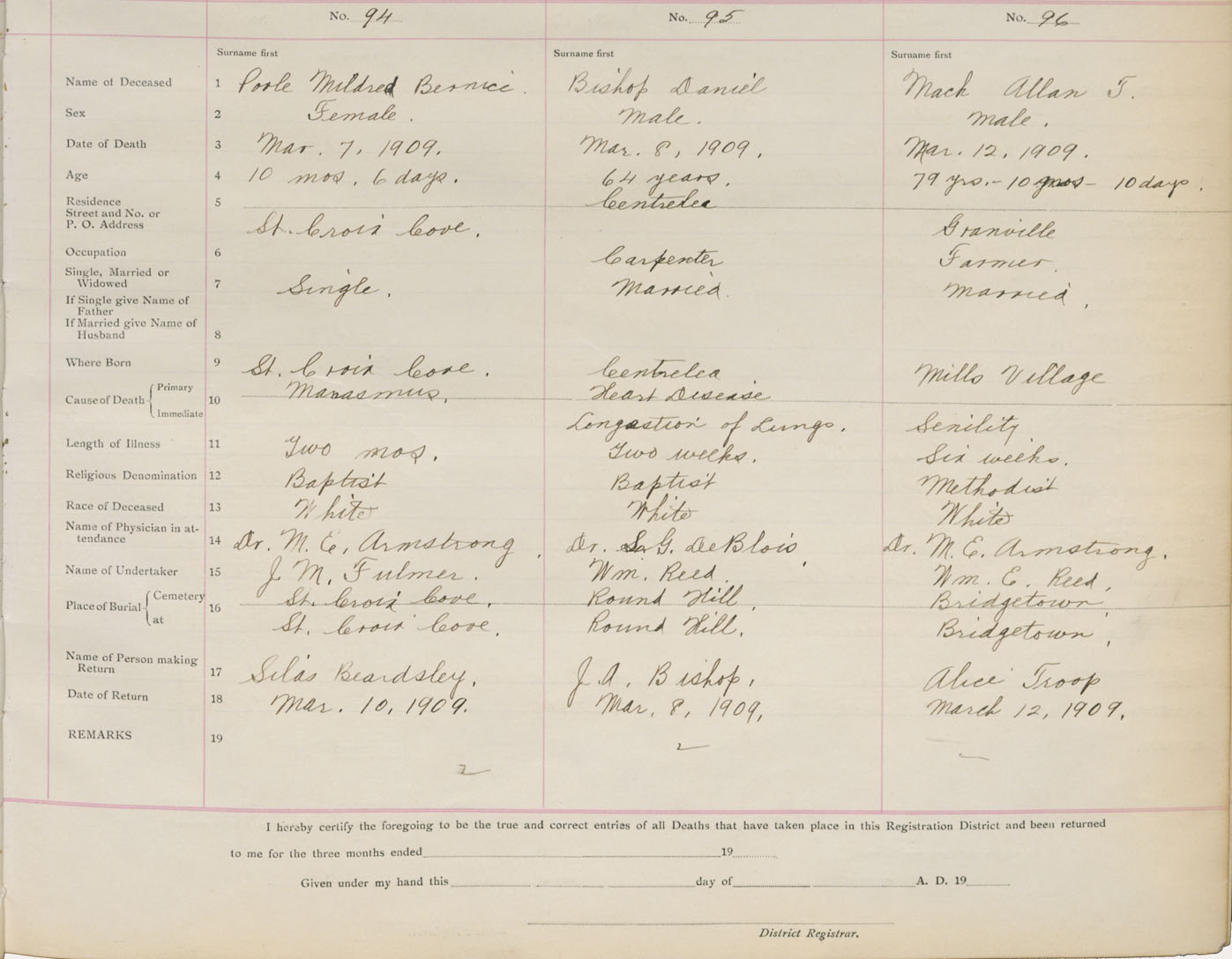 Death Registration: Year: 1909 book: 1 page: 16 number: 94