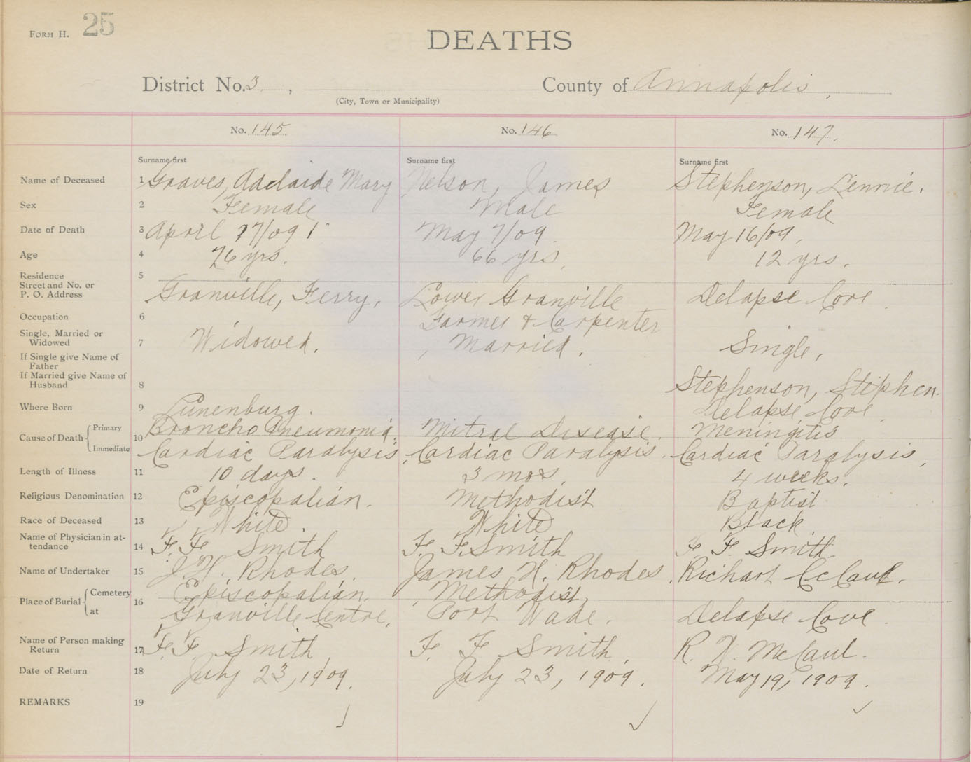 Death Registration: Year: 1909 book: 1 page: 25 number: 147