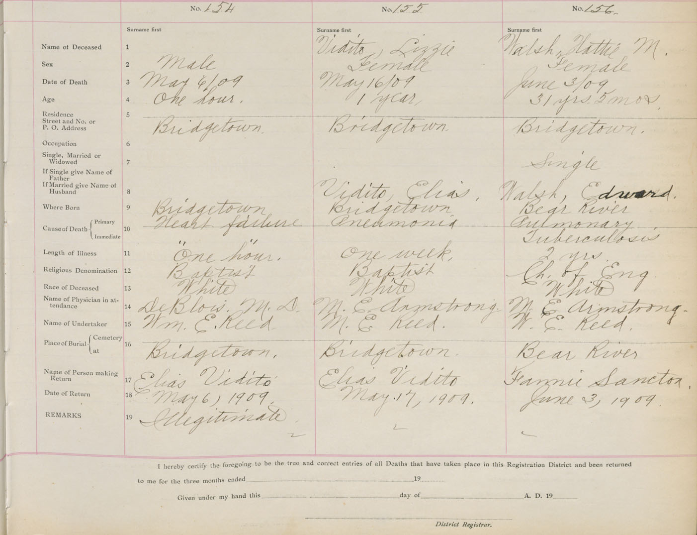 Death Registration: Year: 1909 book: 1 page: 26 number: 156
