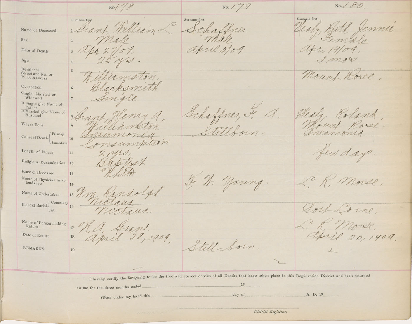 Death Registration: Year: 1909 book: 1 page: 30 number: 180