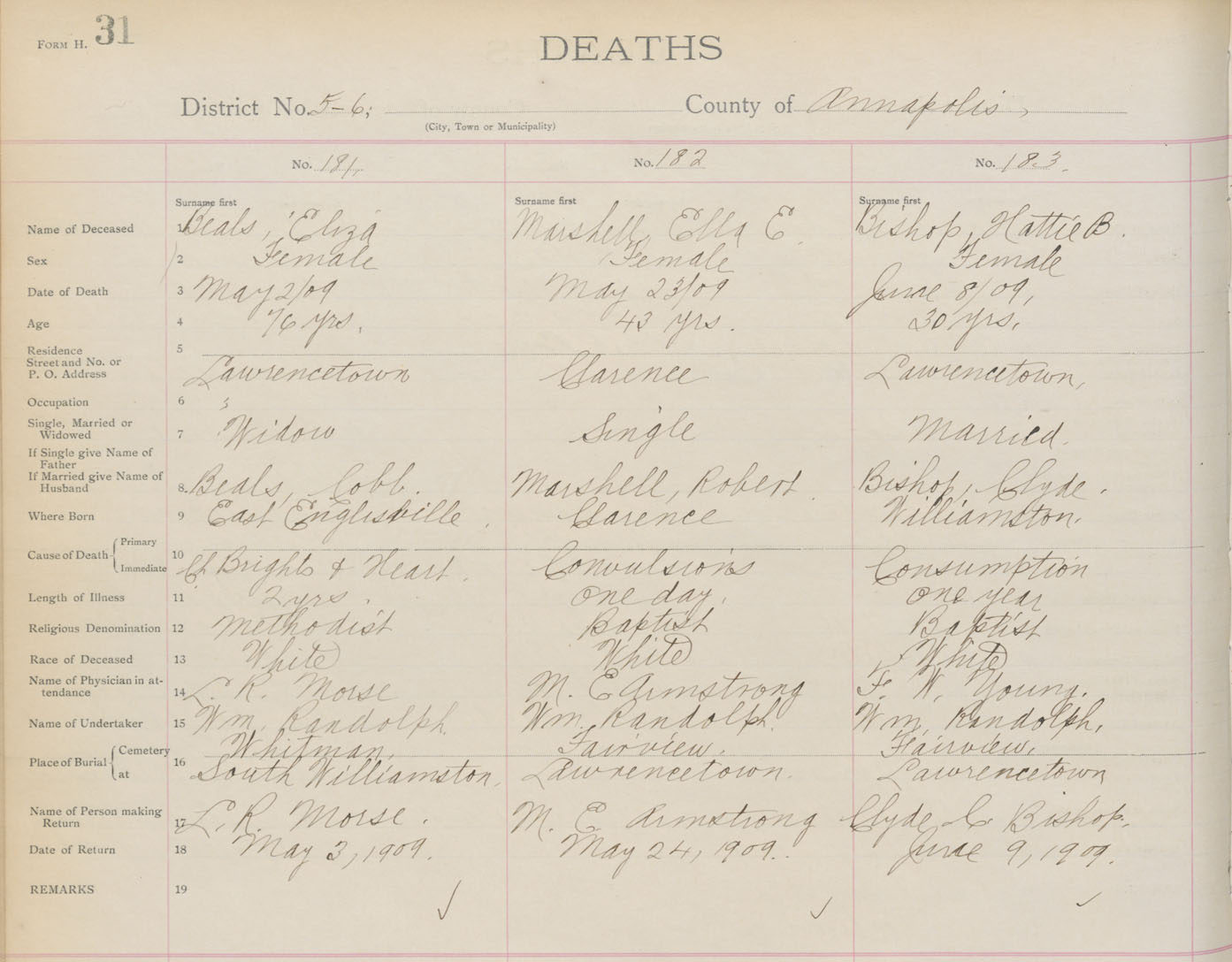 Death Registration: Year: 1909 book: 1 page: 31 number: 183
