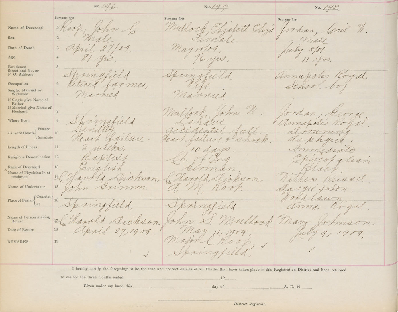 Death Registration: Year: 1909 book: 1 page: 33 number: 198
