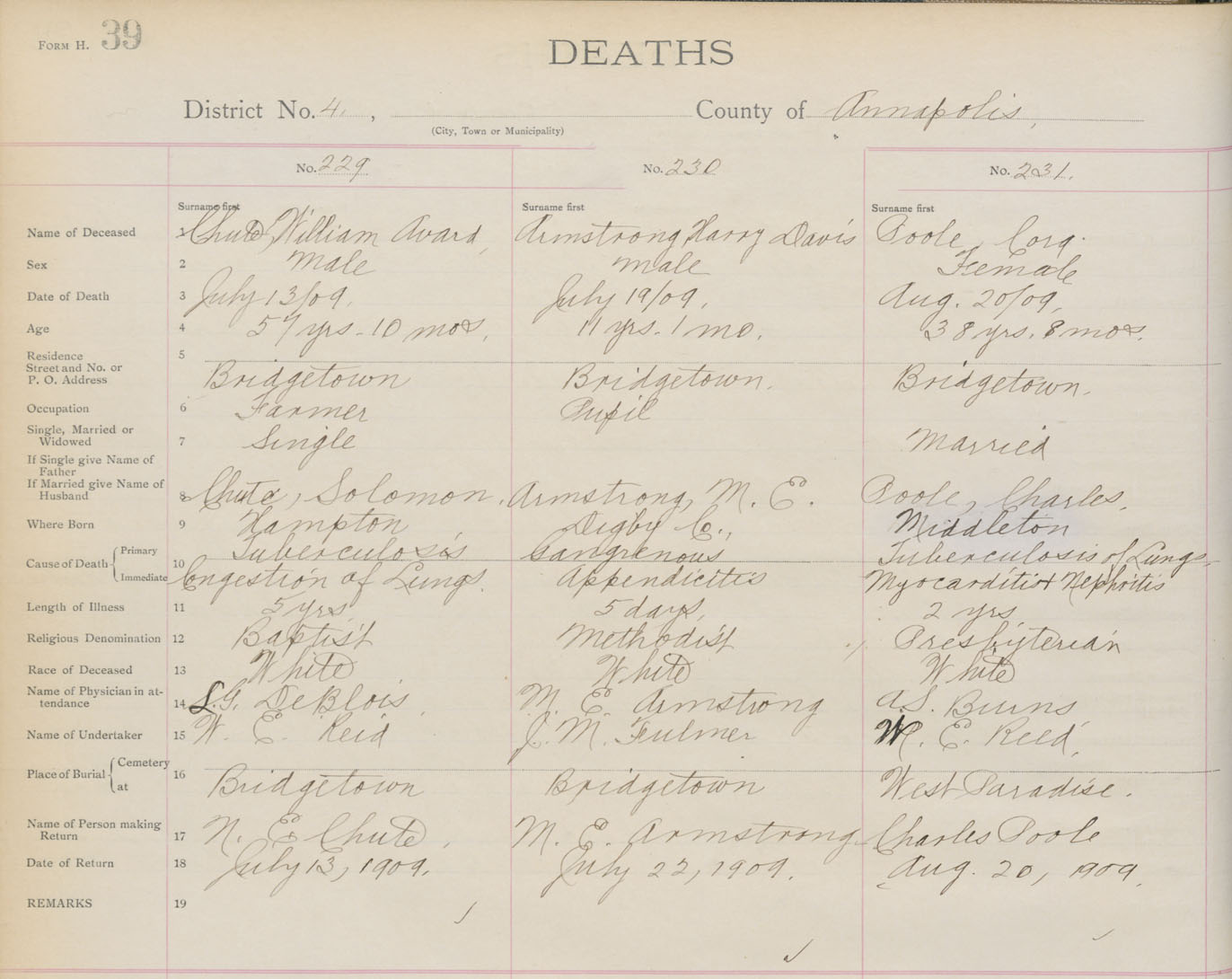 Death Registration: Year: 1909 book: 1 page: 39 number: 231