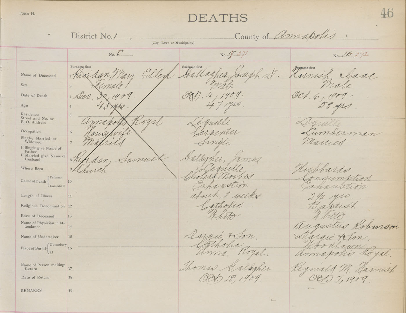 Death Registration: Year: 1909 book: 1 page: 46 number: 271
