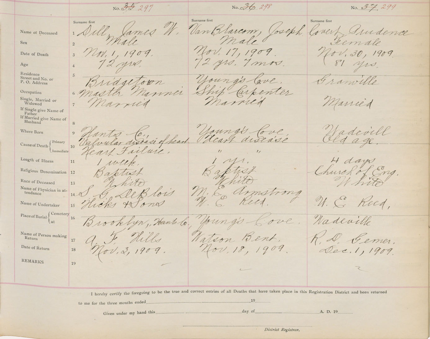 Death Registration: Year: 1909 book: 1 page: 50 number: 297