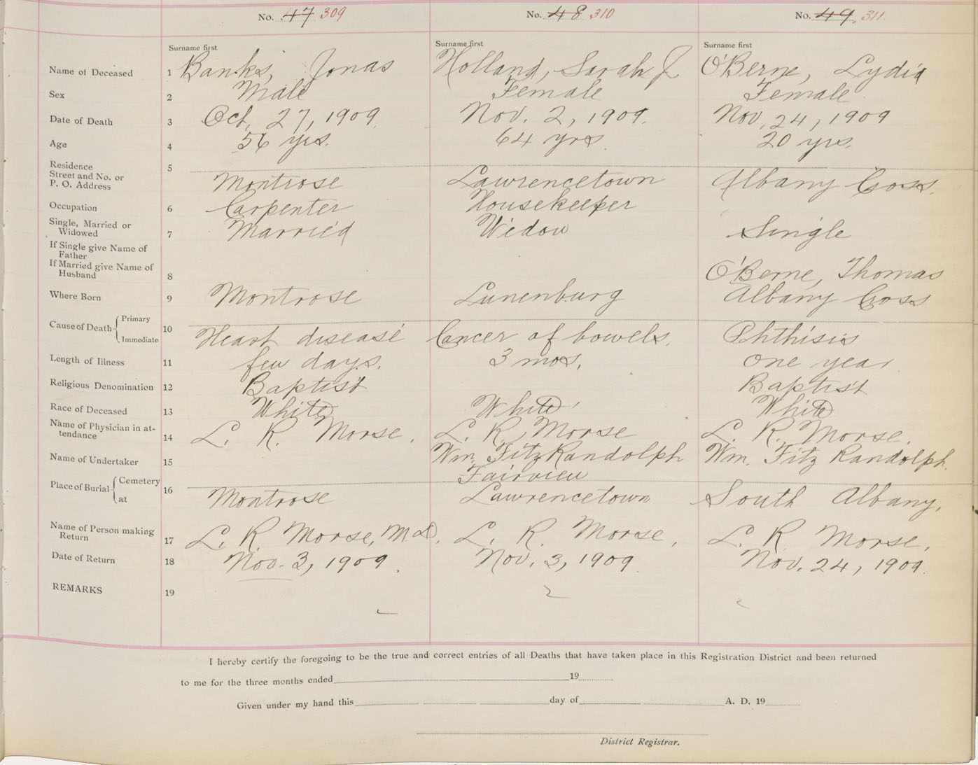 Death Registration: Year: 1909 book: 1 page: 52 number: 309
