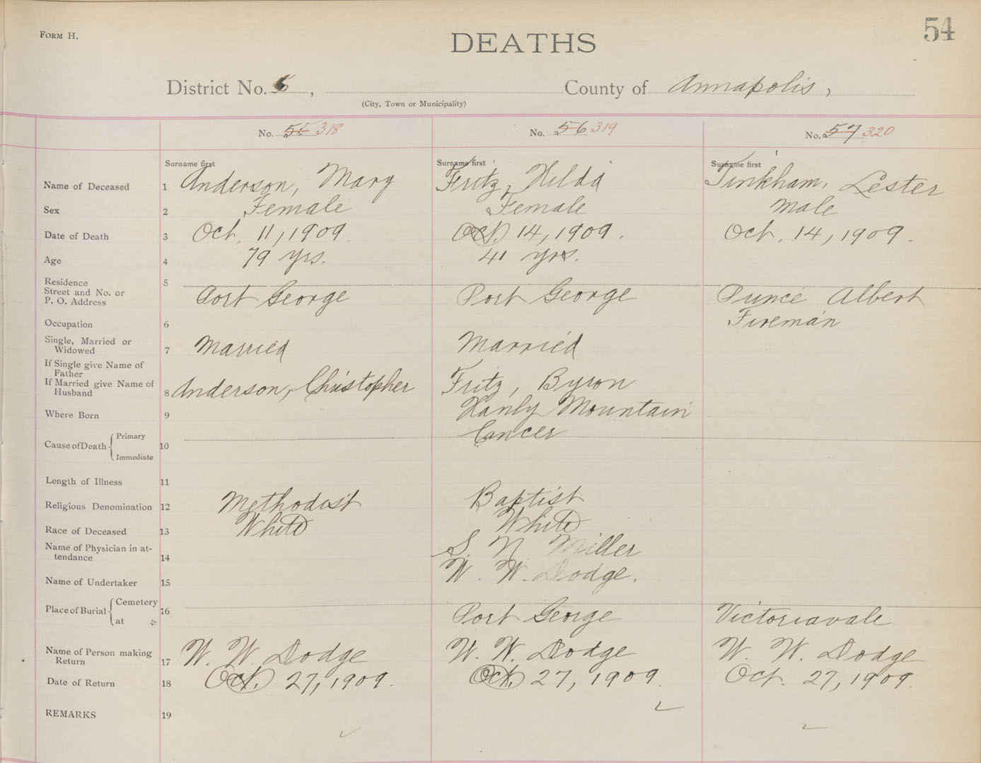 Death Registration: Year: 1908 book: 1 page: 54 number: 318