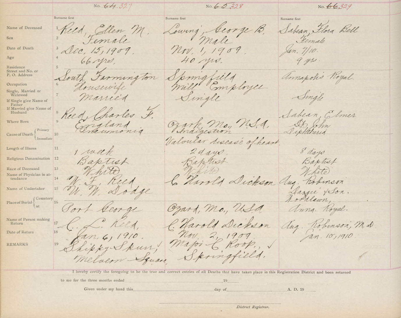Death Registration: Year: 1909 book: 1 page: 55 number: 327