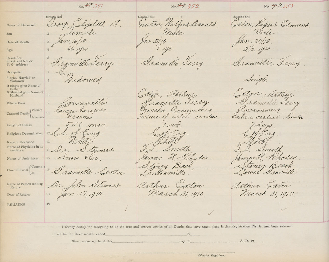 Death Registration: Year: 1910 book: 1 page: 59 number: 351