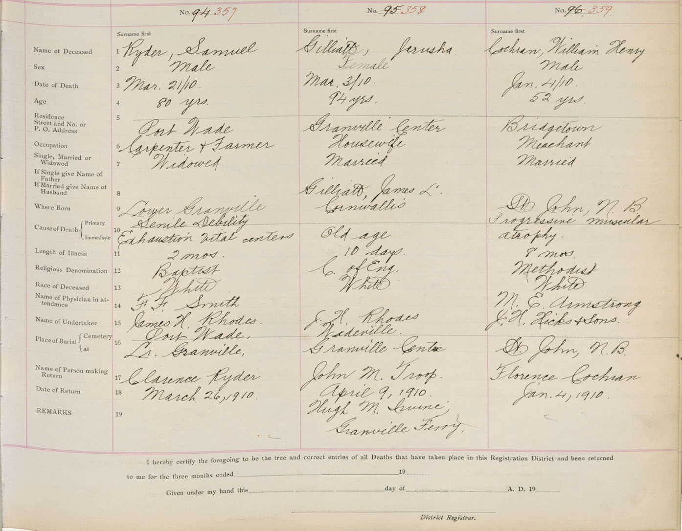 Death Registration: Year: 1910 book: 1 page: 60 number: 357