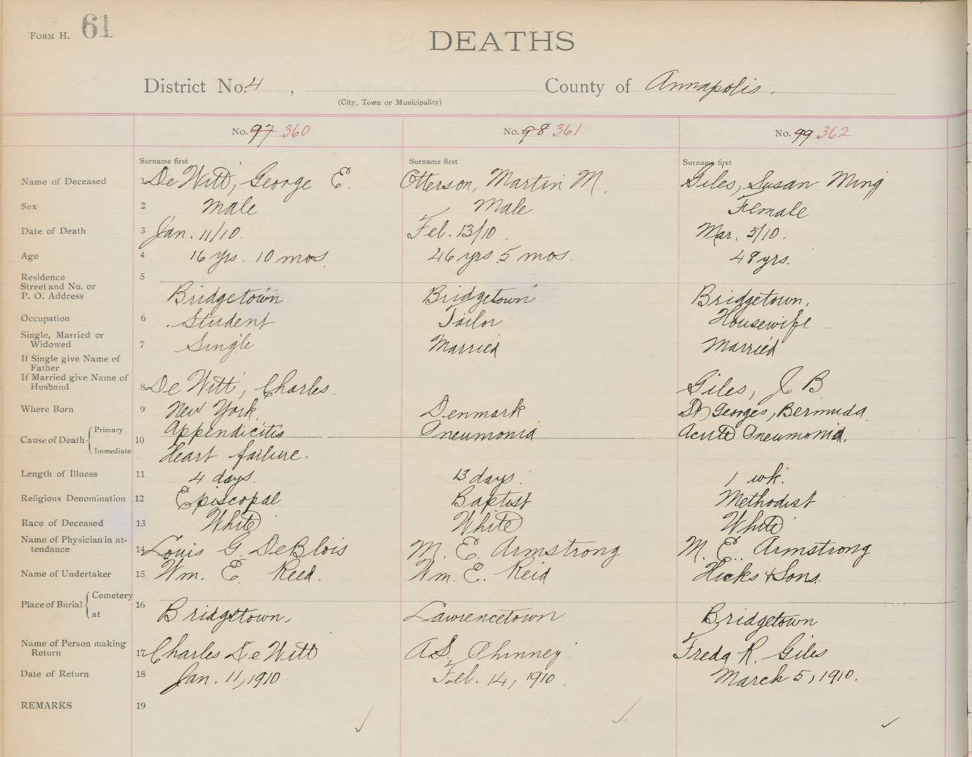 Death Registration: Year: 1910 book: 1 page: 61 number: 360