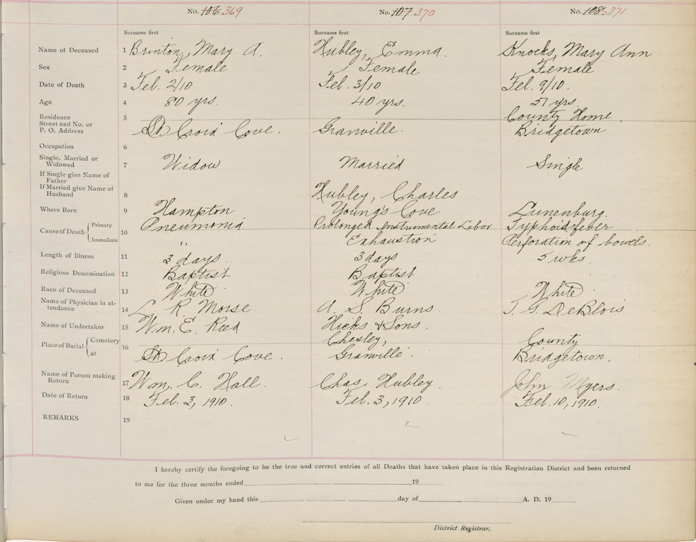 Death Registration: Year: 1910 book: 1 page: 62 number: 369