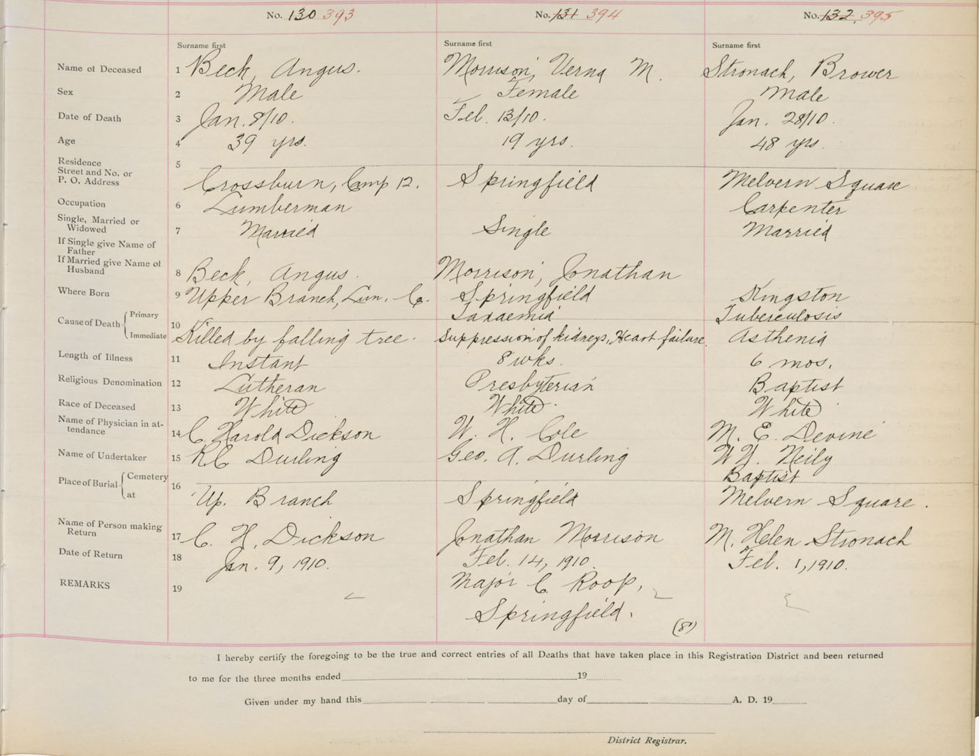 Death Registration: Year: 1910 book: 1 page: 66 number: 393