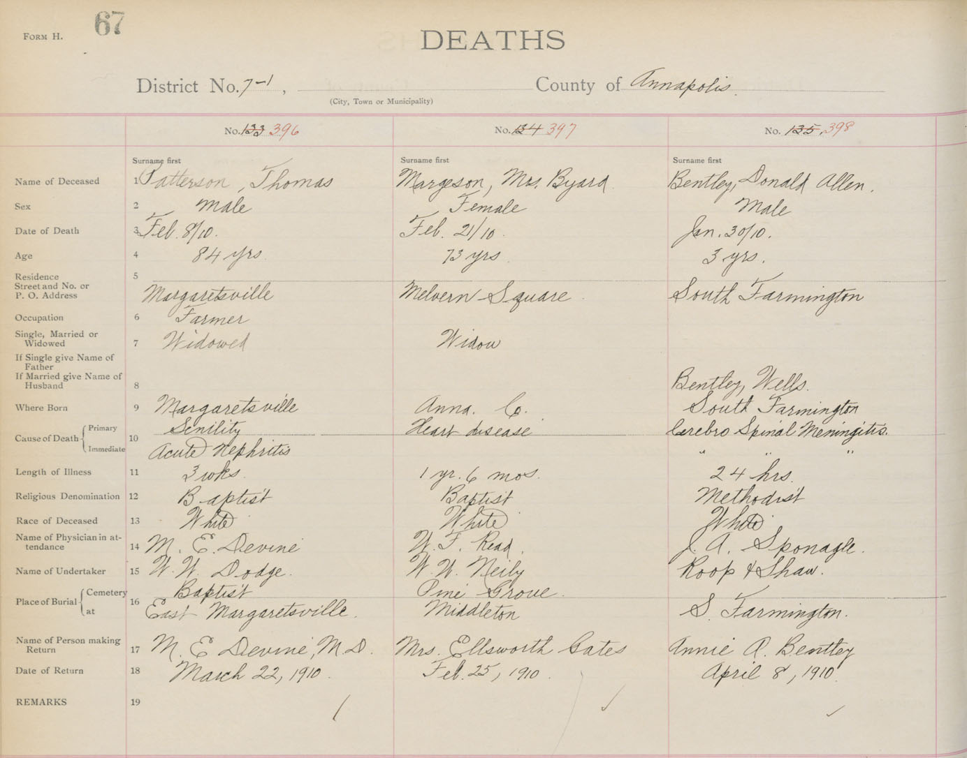 Death Registration: Year: 1910 book: 1 page: 67 number: 396