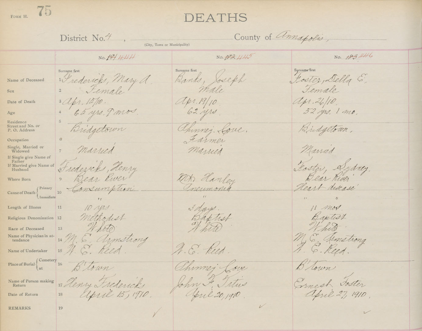 Death Registration: Year: 1910 book: 1 page: 75 number: 444