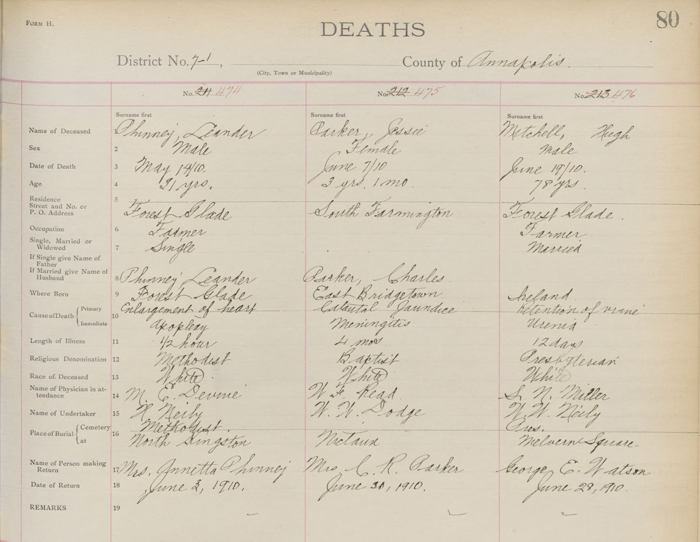 Death Registration: Year: 1910 book: 1 page: 80 number: 474