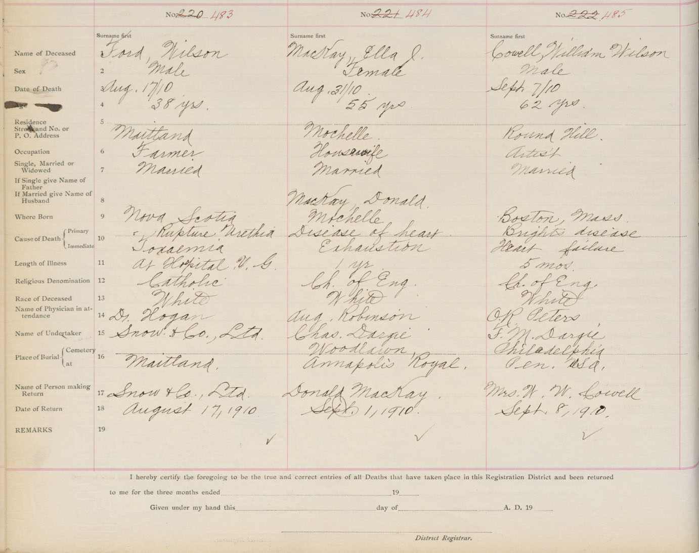Death Registration: Year: 1910 book: 1 page: 81 number: 483
