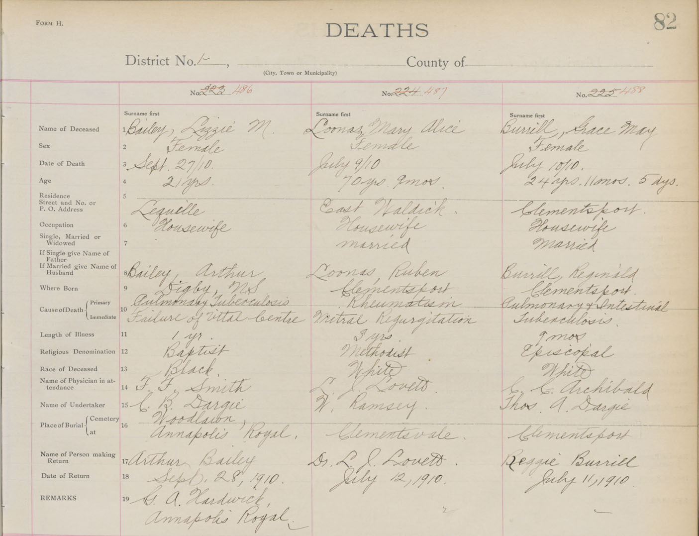 Death Registration: Year: 1910 book: 1 page: 82 number: 486