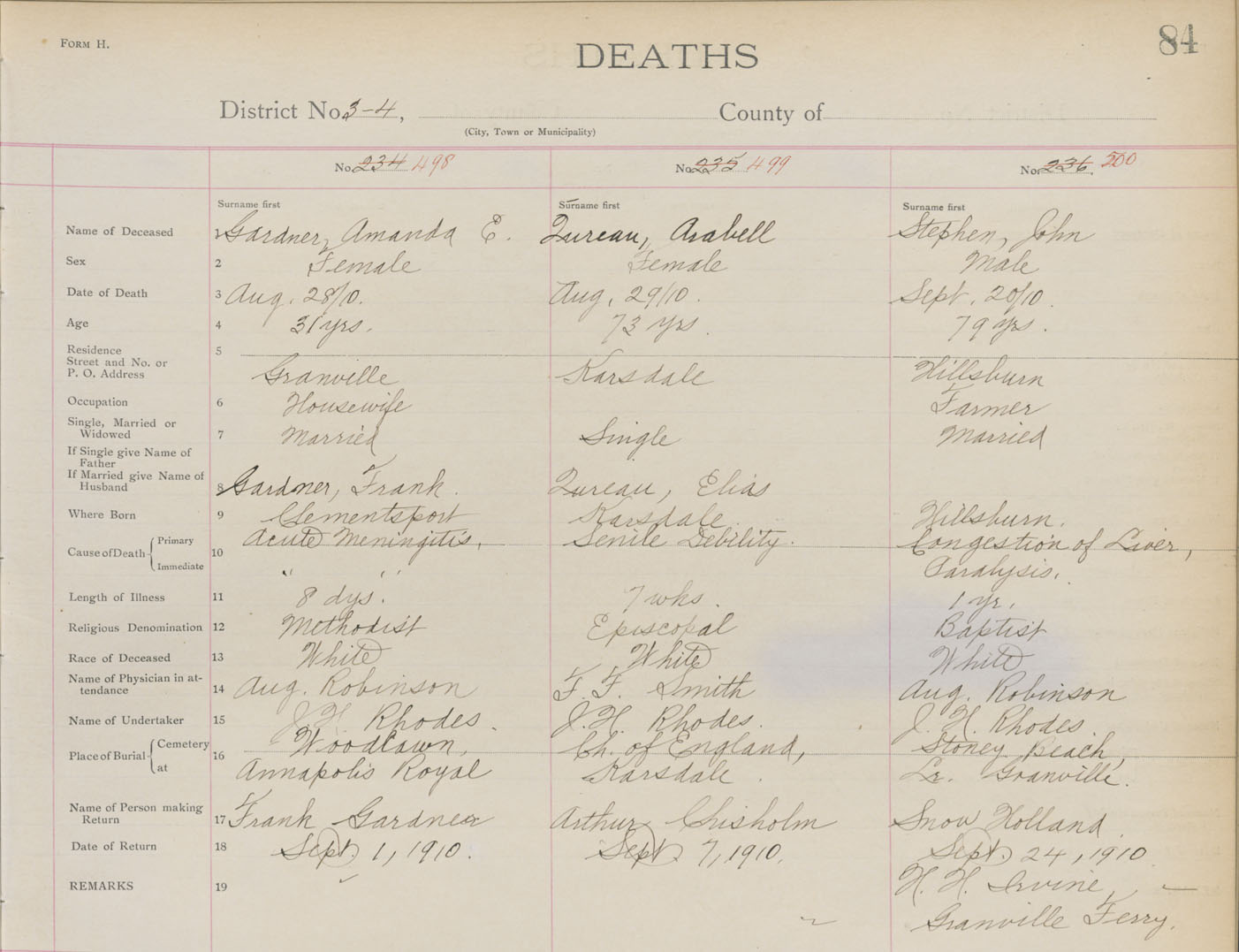 Death Registration: Year: 1910 book: 1 page: 84 number: 498