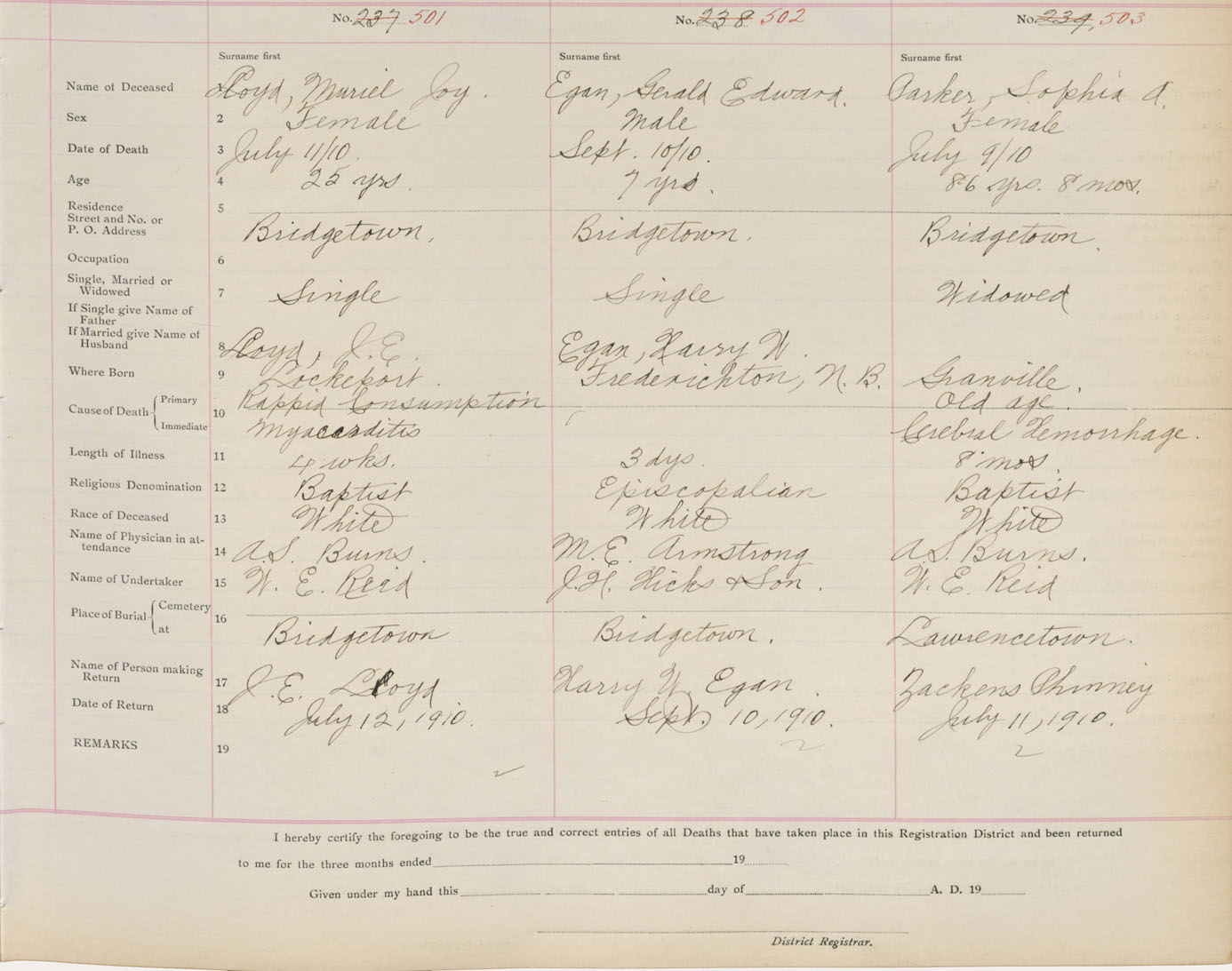 Death Registration: Year: 1910 book: 1 page: 84 number: 501