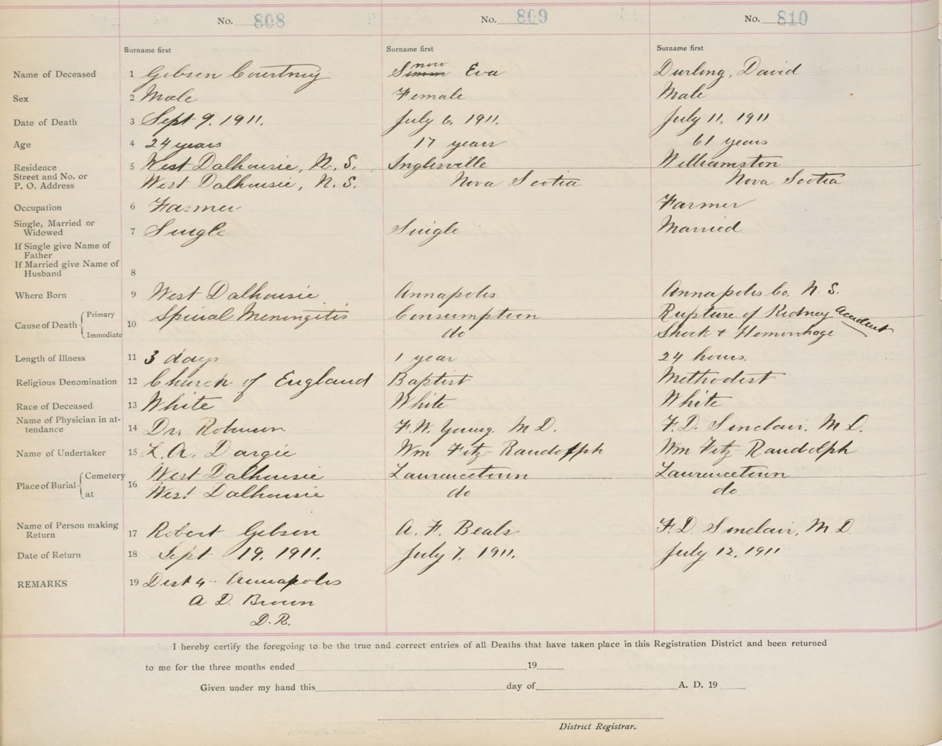 Death Registration: Year: 1911 book: 1 page: 135 number: 810