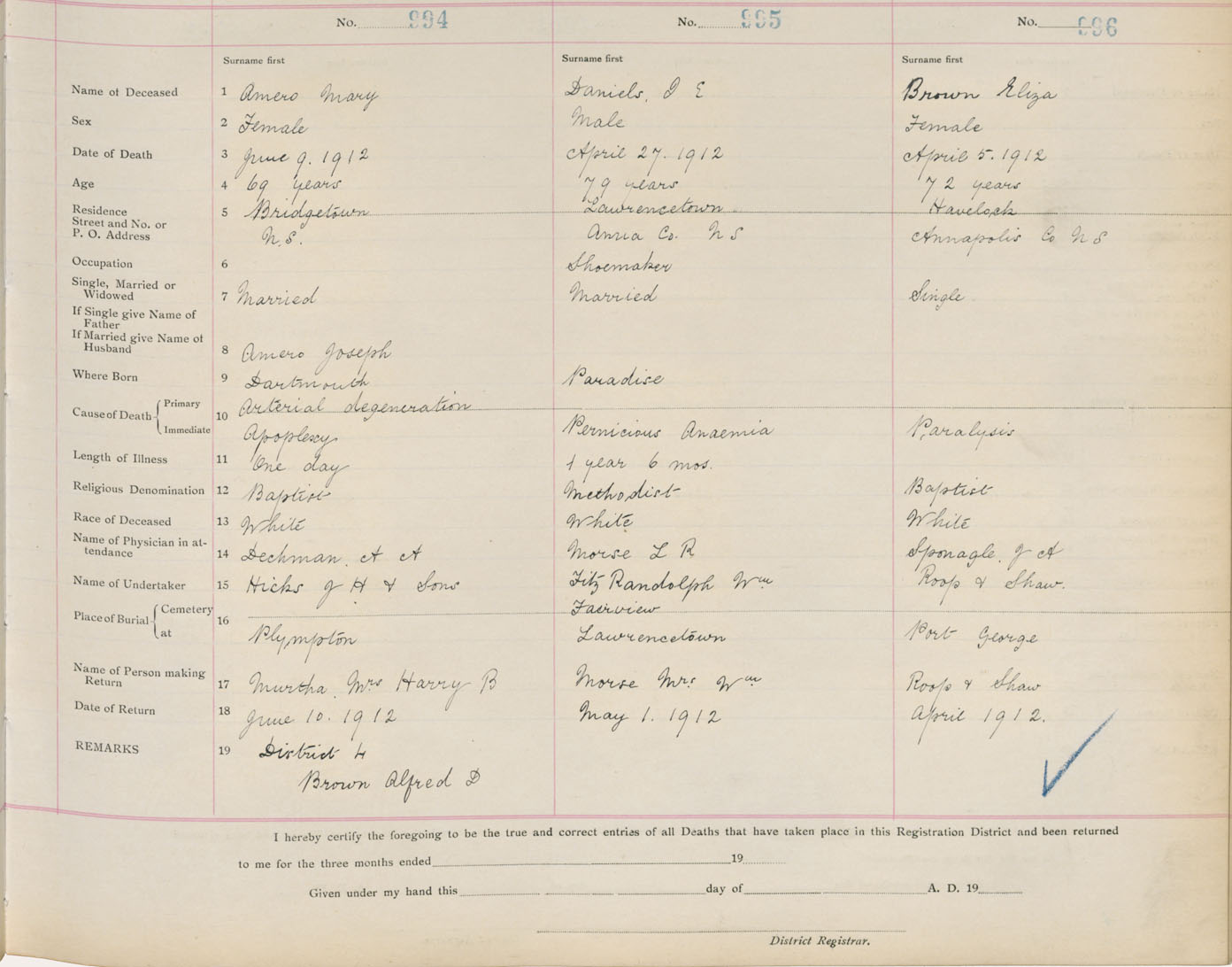 Death Registration: Year: 1912 book: 1 page: 166 number: 996