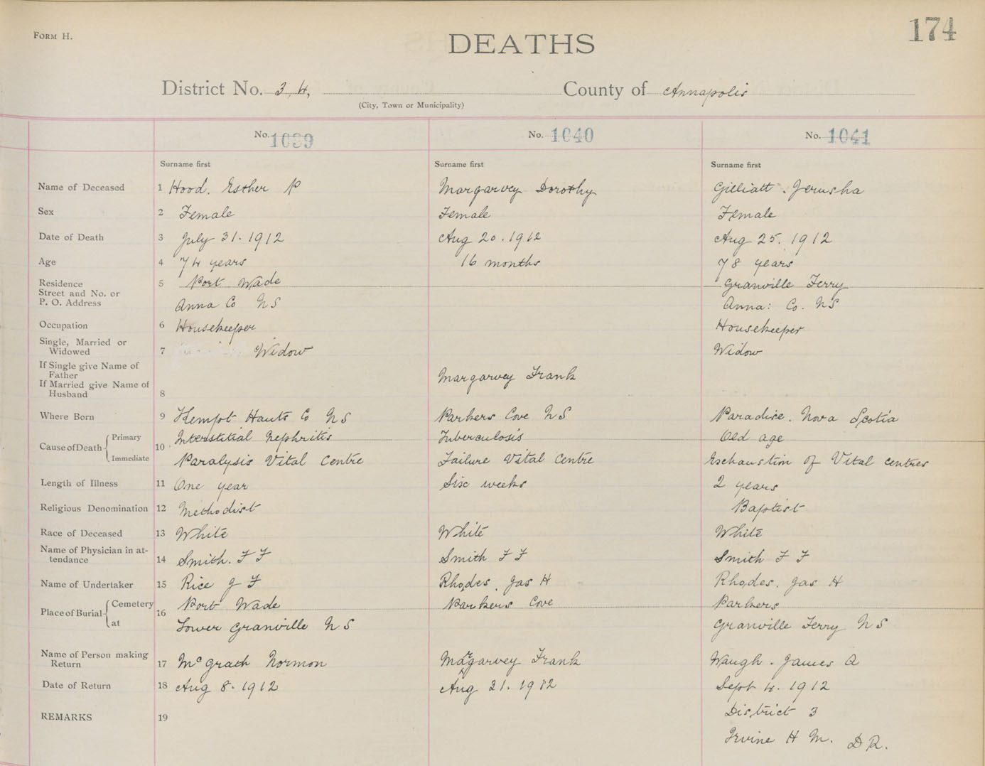 Death Registration: Year: 1912 book: 1 page: 174 number: 1041