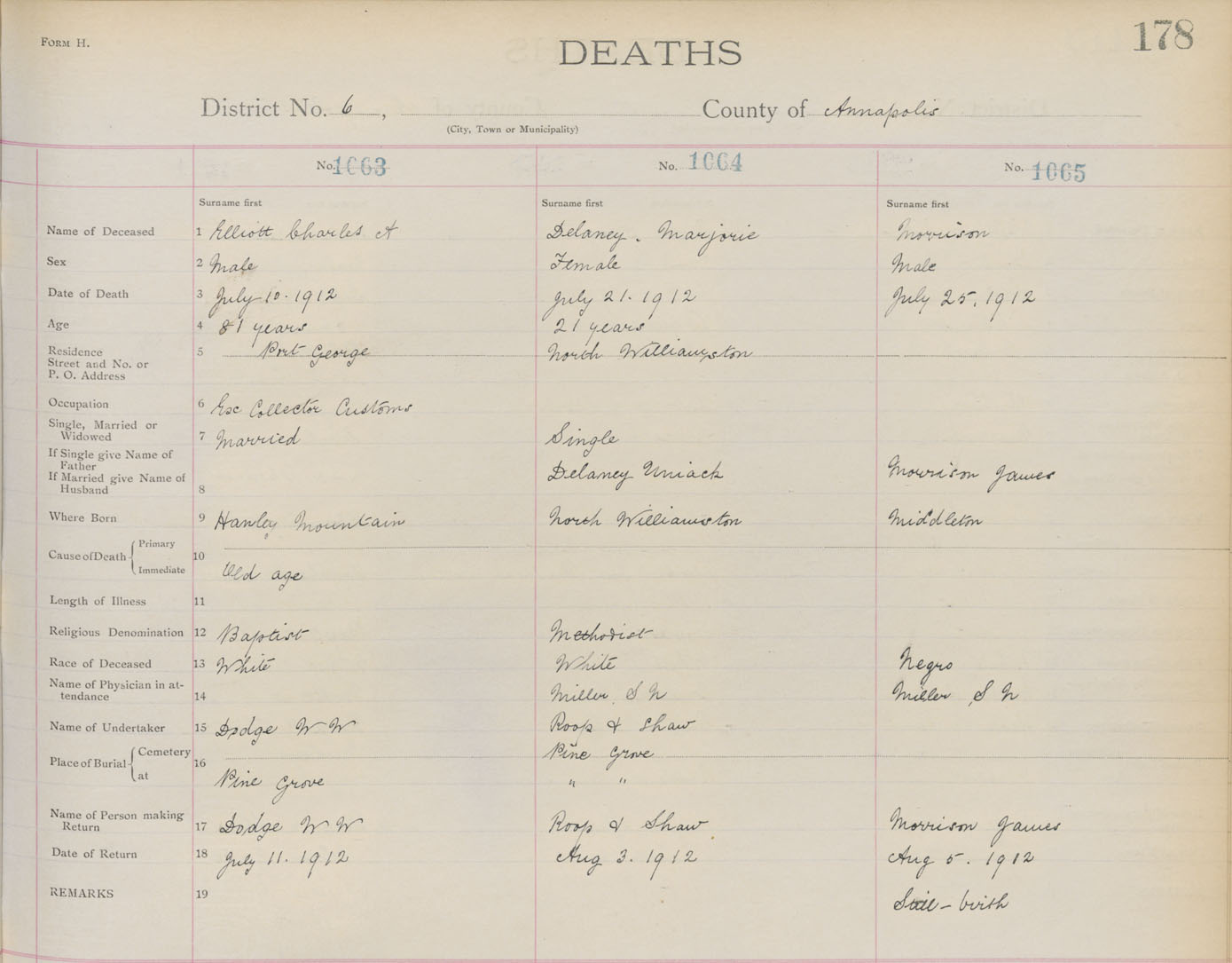 Male Death Registration: Year: 1912 book: 1 page: 178 number: 1065