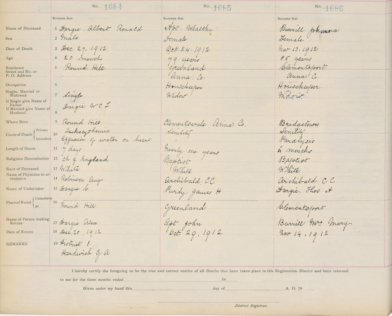 Death Registration: Year: 1912 book: 1 page: 181 number: 1086