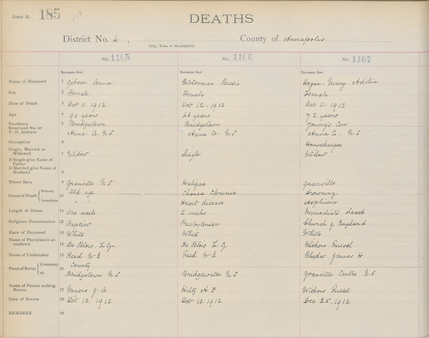 Death Registration: Year: 1912 book: 1 page: 185 number: 1107
