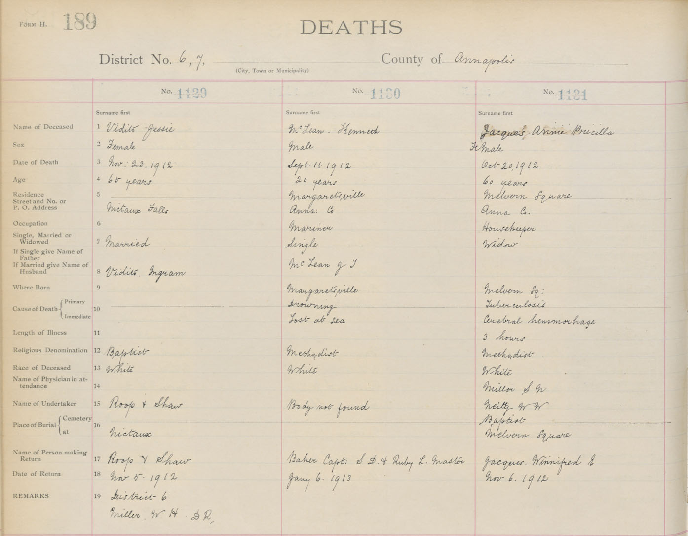 Death Registration: Year: 1912 book: 1 page: 189 number: 1131