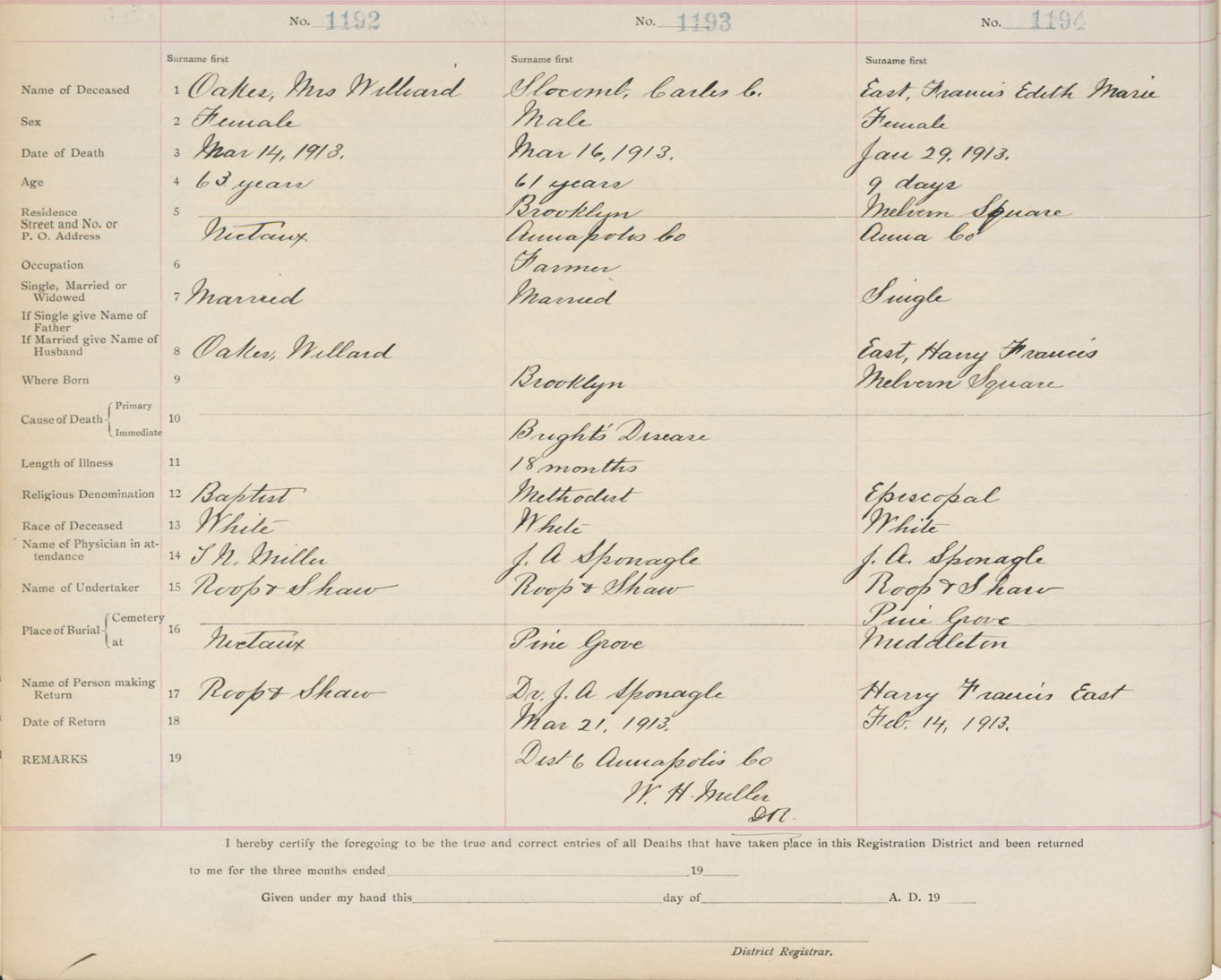Death Registration: Year: 1913 book: 1 page: 199 number: 1194